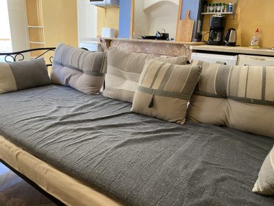 Bien que chaque appartement soit par conséquent très différent l’un de l’autre, il en résulte un même état d’esprit, chaleureux, en couleur, et avec le même point d’honneur à faire revivre l’ancien pour garder les spécificités et la beauté des vieilles constructions, mais dans un environnement fonctionnel et confortable pour nos voyageurs.